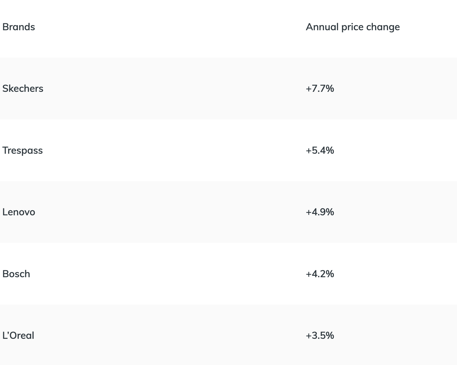 However, for every brand and product dropping in price - there are countless others that have increased in price this year. Some of the biggest price increases during 2023 have been seen on: