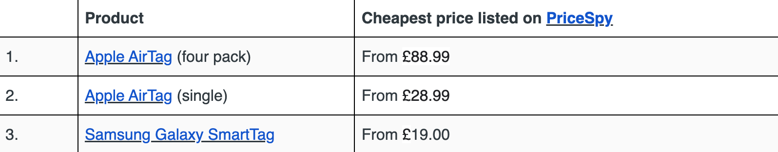 Most-popular Bluetooth tracking devices on PriceSpy: