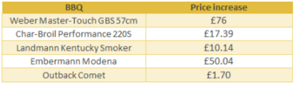· BBQ prices have increased 8% *(£31) since February and are continuing this upwards trend