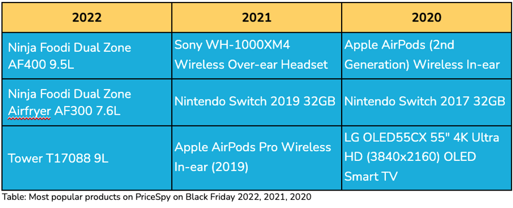 The top three most popular products*** on Black Friday this year were all air fryers, with the popularity of the cult product showing no signs of slowing. This is in sharp contrast to recent years where shoppers have been searching for expensive consumer electronics.