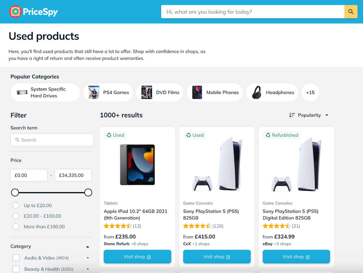 PriceSpy launches feature to allow shoppers to compare used-goods