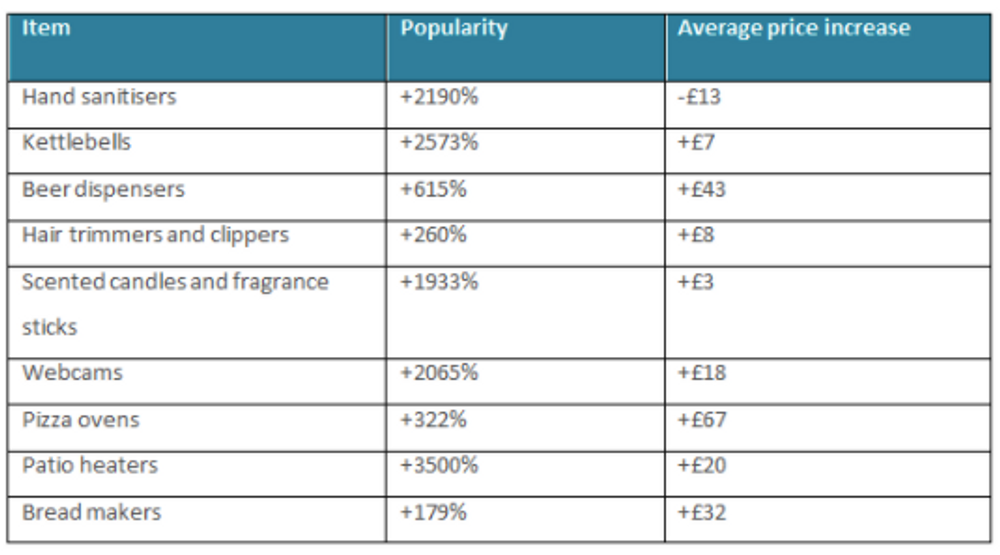 PriceSpy reveals the products which were the winners and losers of the lockdown