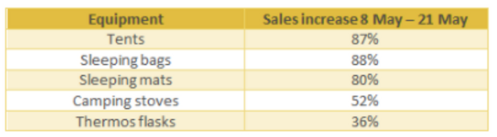 · PriceSpy reports a 77% uplift in popularity of camping equipment