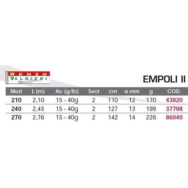 The best price for Renzo Valdieri Empoli Ii Spinning Rod Svart 2.70 m / 15-40g right now is £19.49. PriceSpy compares deals and offers from 2 shops, online and local.