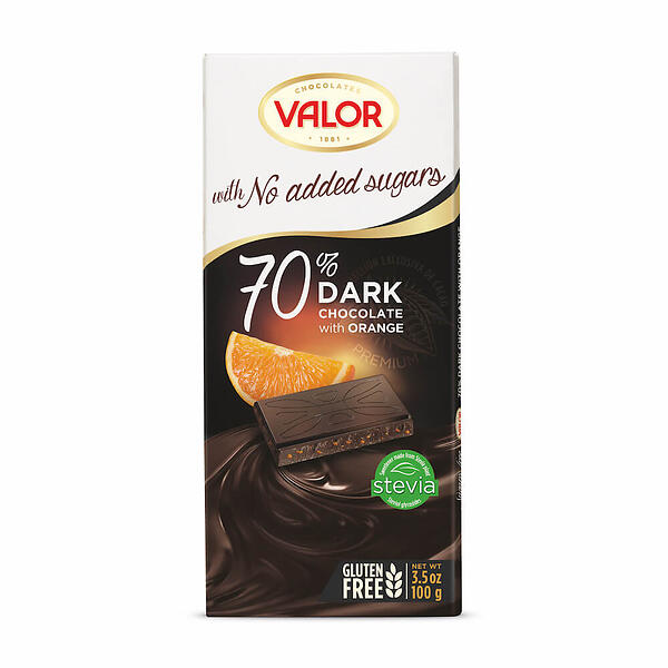 Valor 70% Dark Chocolate with Orange No Added Sugar 100g