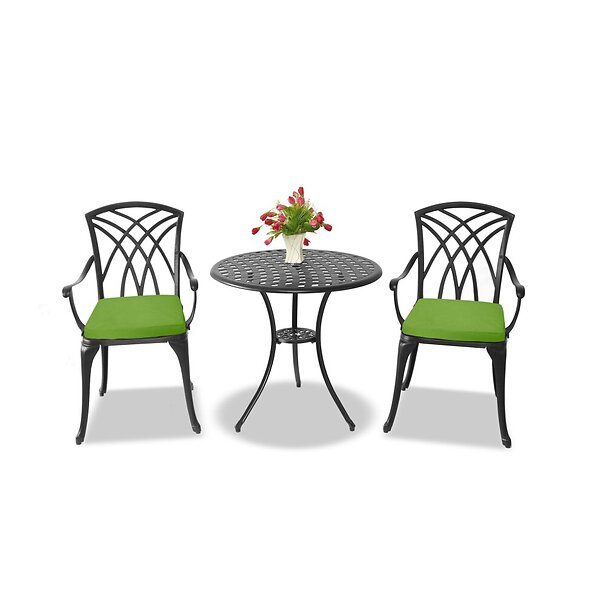 Centurion Supports OSHOWA Garden & Patio Table 2 Large Chairs Cast Aluminium Bistro Set Black with Green Cushions
