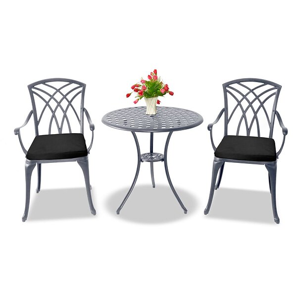 Centurion Supports OSHOWA Garden & Patio Table 2 Large Chairs Cast Aluminium Bistro Set Grey with Black Cushions
