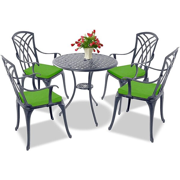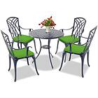 Centurion Supports OSHOWA Garden & Patio Table 4 Large Chairs Cast Aluminium Bistro Set Grey with Green Cushions