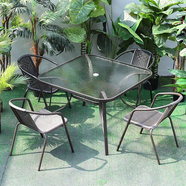 LIVING And Home (105*105cm Black Square Table Only) Garden Patio Chair Outdoor Seating Parasol Hole
