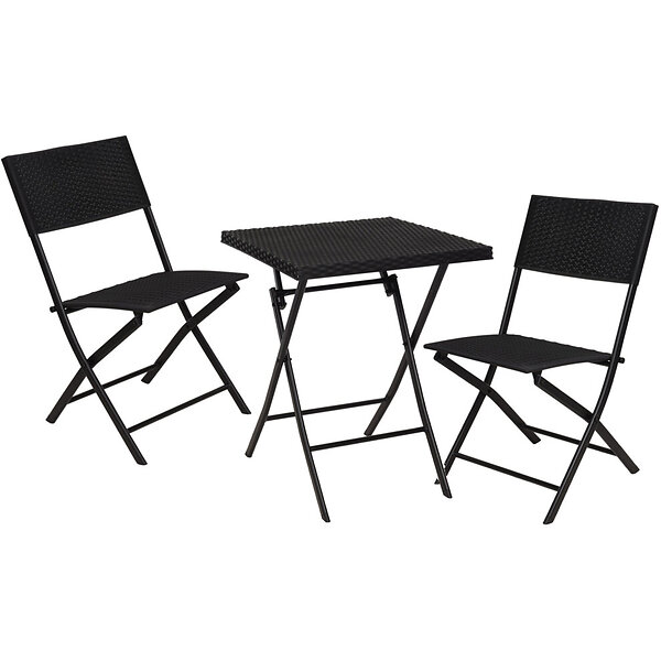 LIVING URBN 3 Pcs Outside Garden Rattan Foldable Table & Chairs Lounge Set