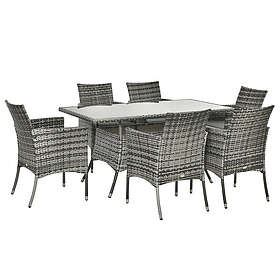 Outsunny 7pc Rattan Garden Furniture Dining Set Wicker Patio Grey