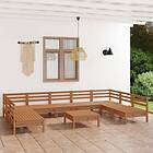 vidaXL Solid Pinewood Garden Lounge Set 10 Piece Honey Brown Outdoor Sofa Seat