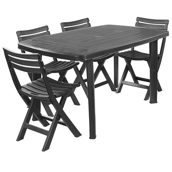 URBN Living (6 Chairs) Large Table With Folding Chairs Garden Set Black