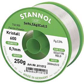 The best price for Stannol Kristall 600 Fairtin Loddetin, blyfritt Blyfritt Sn96.5Ag3Cu0.5 250 g 0. right now is £53.99. PriceSpy compares deals and offers from online and local shops.