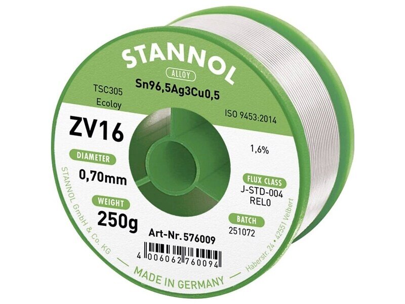 The best price for Stannol ZV16 Lödtenn, blyfri Blyfri Sn96.5Ag3Cu0.5 250g 0.7 mm right now is £53.99. PriceSpy compares deals and offers from online and local shops.
