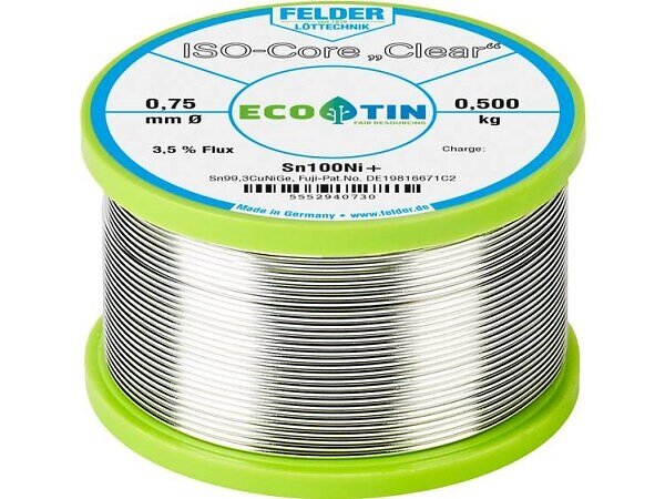 The best price for Felder Löttechnik ISO-Core Clear Sn100Ni+ Lödtenn Spole Sn99.25Cu0.7Ni0.05 0.500 right now is £63.99. PriceSpy compares deals and offers from online and local shops.
