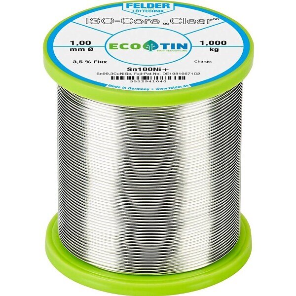 Felder Löttechnik ISO-Core Clear Sn100Ni+ Lödtenn Spole Sn99.25Cu0.7Ni0.05 1.000