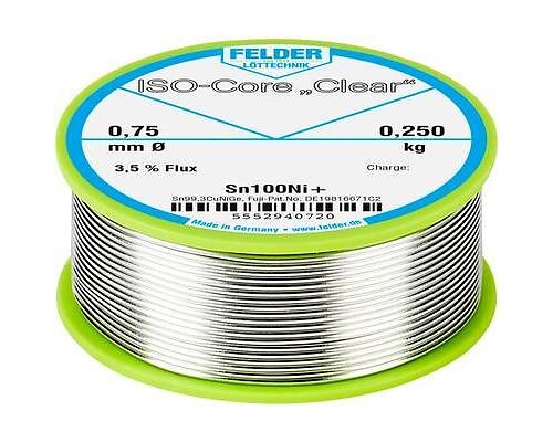 Felder Löttechnik ISO-Core Clear Sn100Ni+ Lödtenn Spole Sn99.25Cu0.7Ni0.05 0.250
