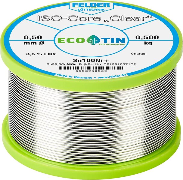 Felder Löttechnik ISO-Core Clear Sn100Ni+ Lödtenn Spole Sn99.25Cu0.7Ni0.05 0.500