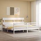 vidaXL Bed Frame med huvudgavel vit massivt trä 3195107