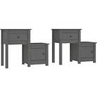 vidaXL Sängbord 2 st grå 79.5x38x65.5 cm massiv furu 814544