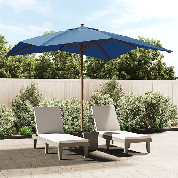vidaXL Parasoll med trästång 300x300x273 cm azurblå 363198