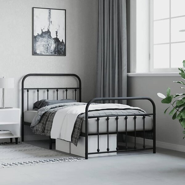 vidaXL Bed Frame med huvudgavel och fotgavel svart metall 100x190 cm 352590