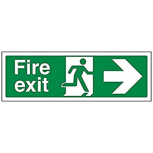 V Safety V Eldutgång pil höger skylt landskap 300 mm x 100 mm självhäftande vinyl