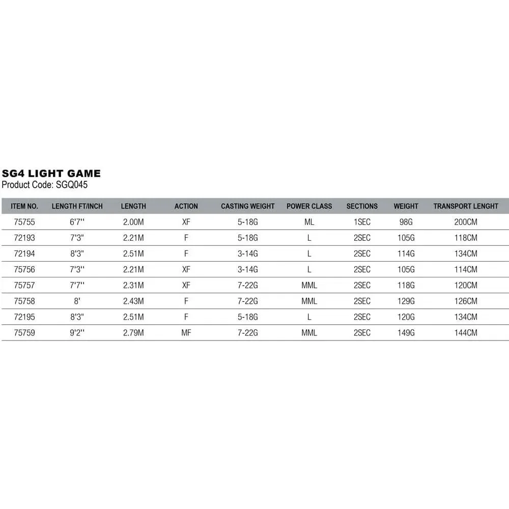 The best price for Savage Gear Sg4 Light Game Spinning Rod Silver 2.79 m 7-22g right now is £82.99. PriceSpy compares deals and offers from 3 shops, online and local.