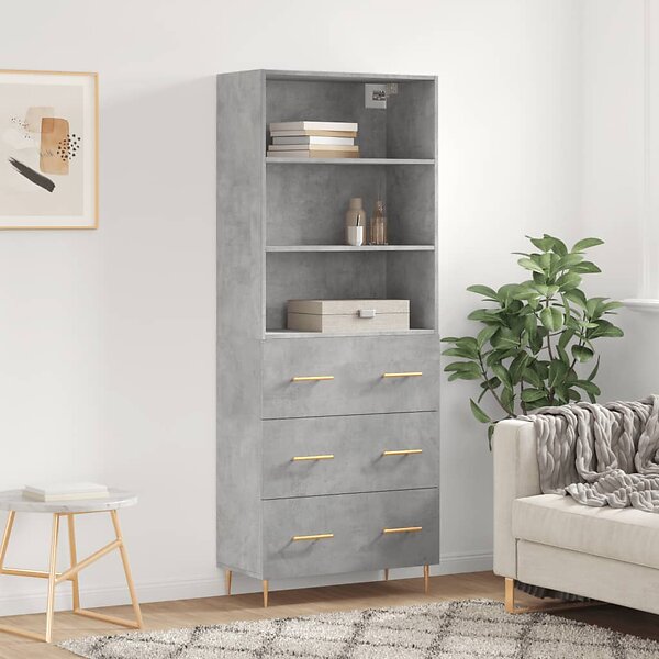 vidaXL Högskåp betonggrå 69.5x34x180 cm konstruerat trä 3189369