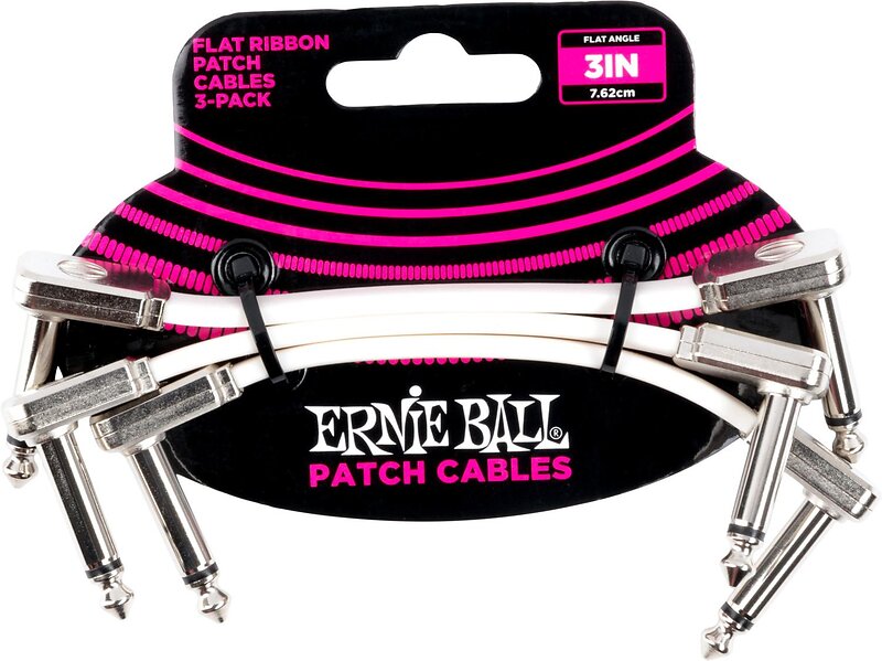 Ernie Ball 6384 3in Flat Ribbon Patch Cable White 3 Pack