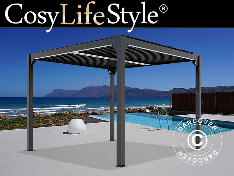 Dancover Bioklimatisk pergola Paviljong Trädgårdspaviljong San Pablo, 4x4m, Svart