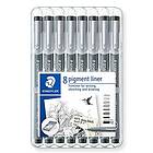 Staedtler Pigment Liner Fineliner Pens with Assorted Line Width - Black (Set of 8)