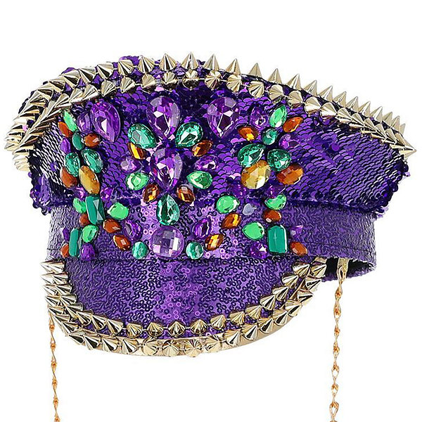 Kaptenshatt Paljetter och Nitar Lila