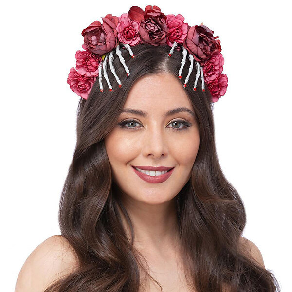 Diadem med Röda Rosor och Skeletthänder