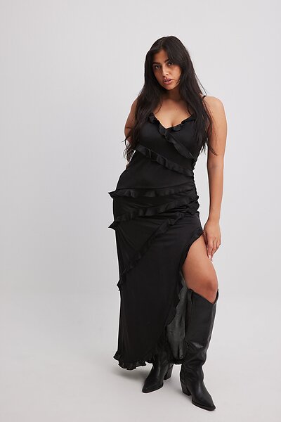 NA-KD Maxiklänning med volang Black
