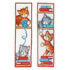 Broderikit Bokmärke Räknade Korsstygn Playful kittens 2 stk 6 x 20 cm Vervaco