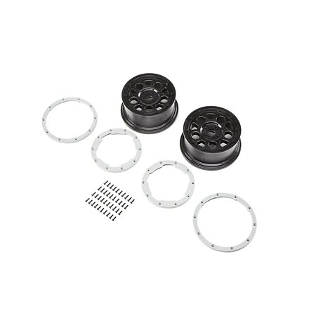 LOSI LOS45015 Wheel, Black Beadlock, Silver (2): DBXL-E