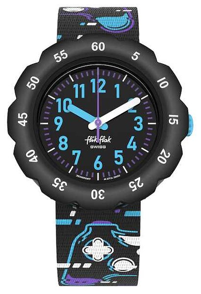 Flik Flak FPSP067 TRY AGAIN (34.75mm) Black Dial Blue and Watch