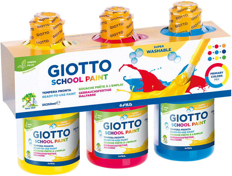 Giotto Washable Paint Färger 250ml, Gul/Blue/Röd
