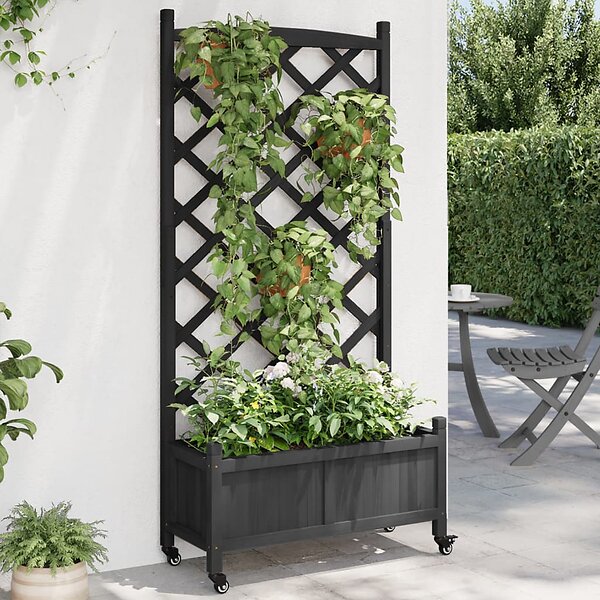 vidaXL Odlingslåda med spaljé och hjul svart massivt granträ 3207652