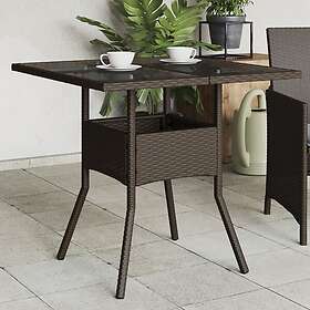 vidaXL Trädgårdsbord med glasskiva brun 80x80x75 cm konstrotting 365524
