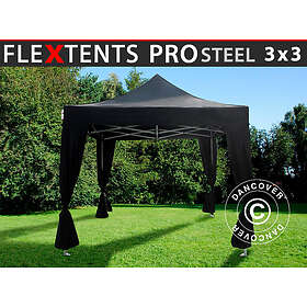 Dancover Snabbtält Depåtält Easy-up tält Eventtält Partytält FleXtents PRO Steel 3x3m Svart, inkl. 4 dekorativa gardiner
