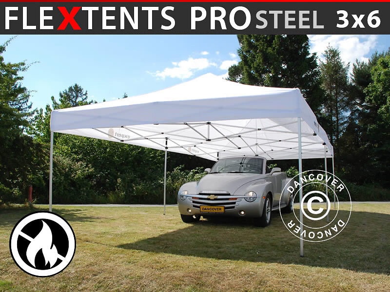 Dancover Snabbtält Depåtält Easy-up tält Eventtält Partytält FleXtents PRO Steel 3x6m Vit, Flammhämmande