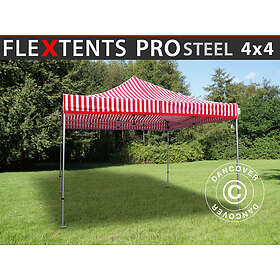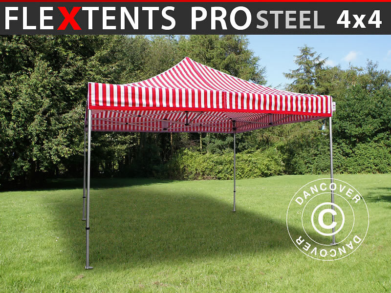 Dancover Snabbtält Depåtält Easy-up tält Eventtält Partytält FleXtents PRO Steel 4x4m Randigt
