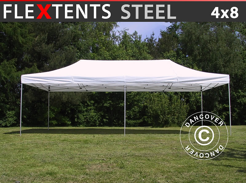 Dancover Snabbtält Depåtält Easy-up tält Eventtält Partytält FleXtents Steel 4x8m Vit