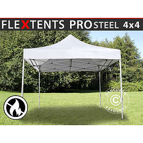 Dancover Snabbtält Depåtält Easy-up tält Eventtält Partytält FleXtents PRO Steel 4x4m Vit, Flammhämmande