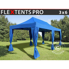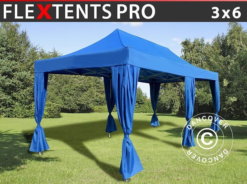 Dancover Snabbtält Depåtält Easy-up tält Eventtält Partytält FleXtents PRO 3x6m Blå, inkl. 6 dekorativa gardiner