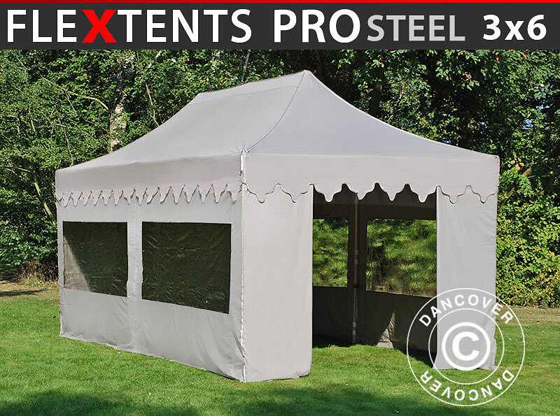 Dancover Snabbtält Depåtält Easy-up tält Eventtält Partytält FleXtents PRO Steel "Morocco" 3x6m Latte, inkl. 6 sidor
