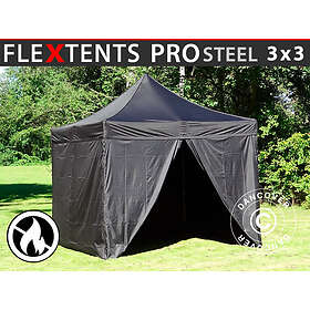 Dancover Snabbtält Depåtält Easy-up tält Eventtält Partytält FleXtents PRO Steel 3x3m Svart, Flammhämmande, inkl. 4 sidor